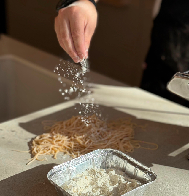 Tras crear nuestros tallarines o espaguetis, elaboraremos la auténtica salsa carbonara romana.