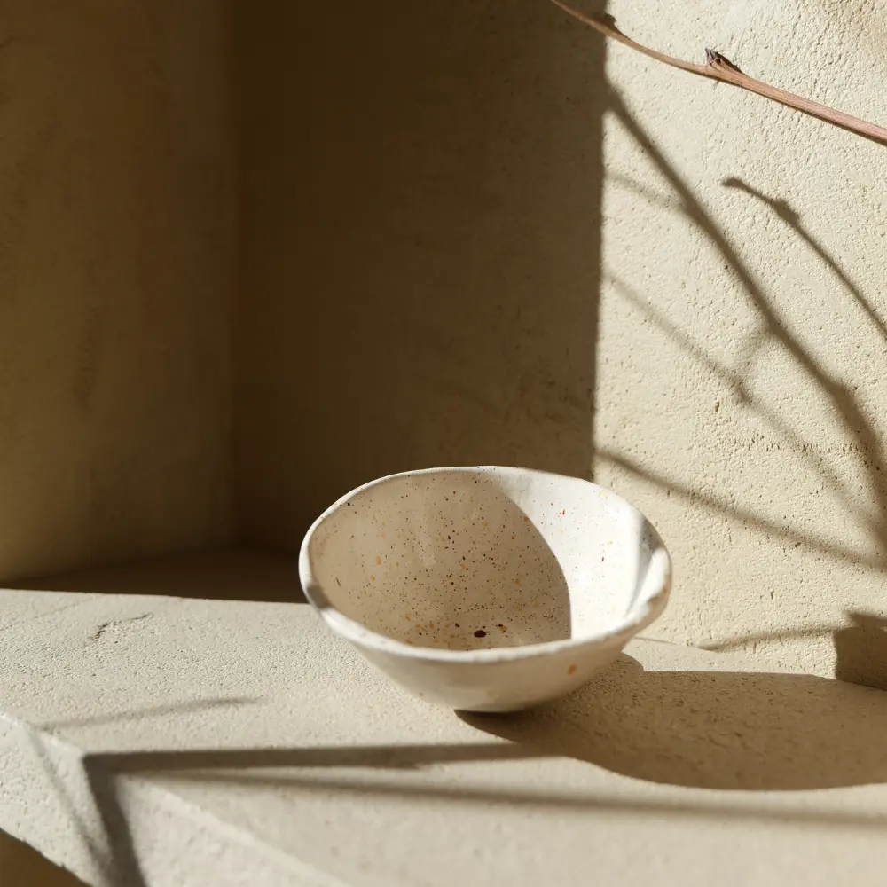 Este bol o cuenco para salsas y aperitivos es el complemento perfecto para cualquier mesa. Su acabado en blanco roto, salpicado con detalles marrones, aporta un toque de naturalidad y calidez. Es ideal para servir aperitivos, salsas, dips o pequeños acompañamientos. Cada pieza es única, con ligeras variaciones propias del trabajo artesanal.