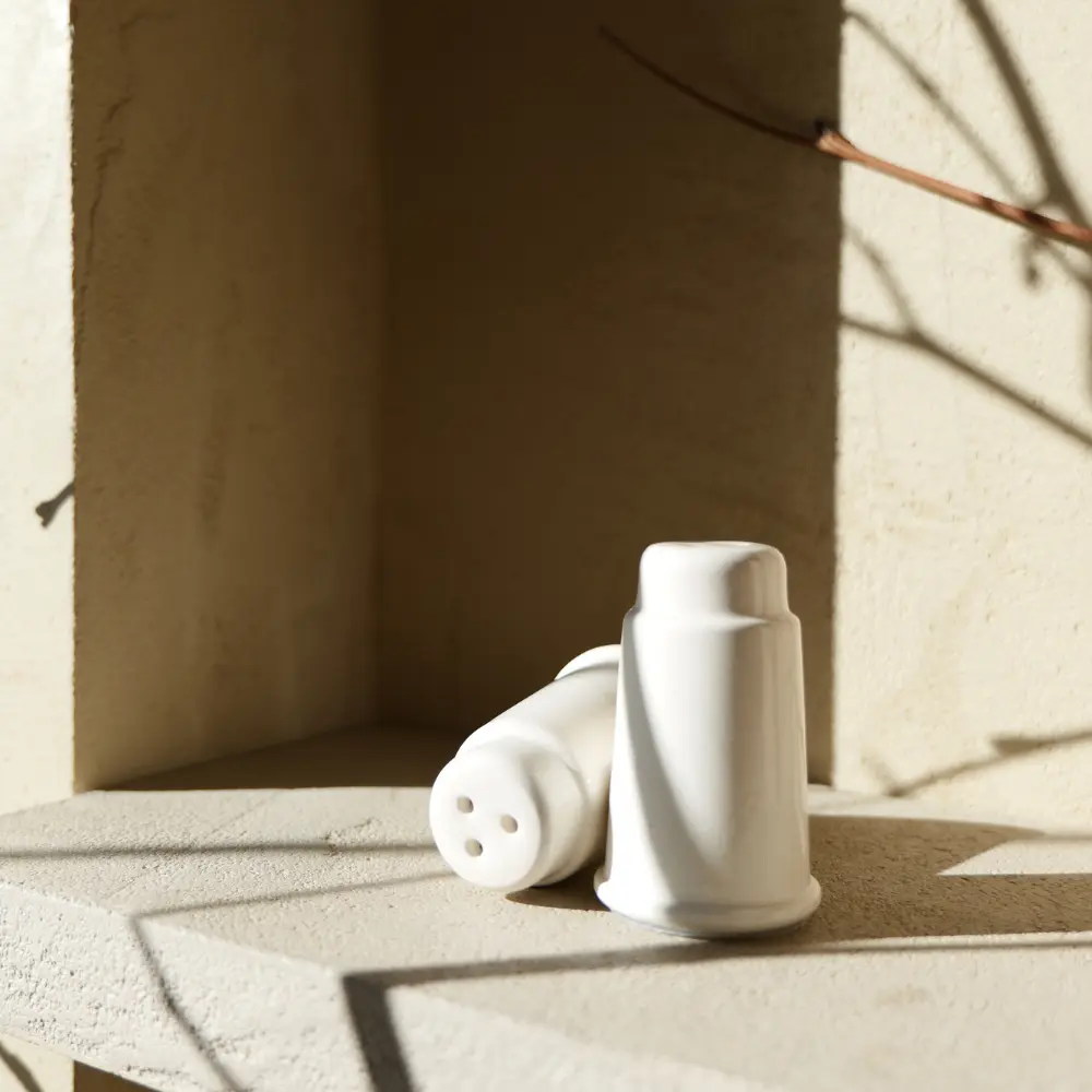 Uno de los básicos imprescindibles para tu mesa, este set de salero y pimentero combina funcionalidad y elegancia. Su diseño cuidado y acabado blanco permite sazonar con delicadeza cualquier preparación. Cada pieza es única, con ligeras variaciones propias del trabajo artesanal.